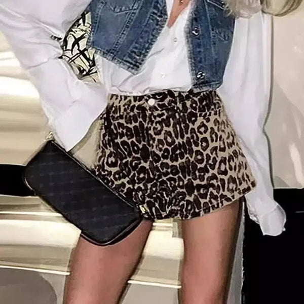 Aoaiiys Shorts com estampa de leopardo feminino calça curta jeans casual