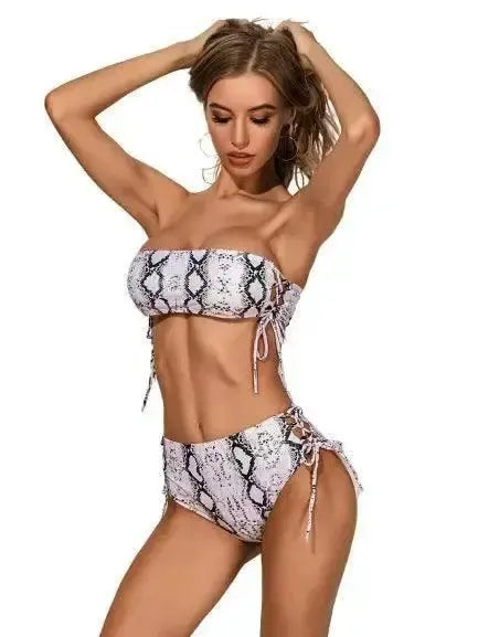 Biquíni Bandeau com estampado de cobra