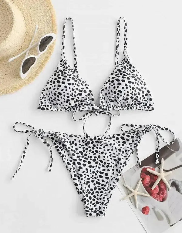 Biquíni com fenda Fato de banho com estampado de pele de cobra de dupla face em leopardo