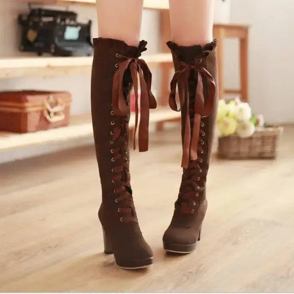 Descrição do Produto: Botas de salto alto com tiras de veludo para mulheres