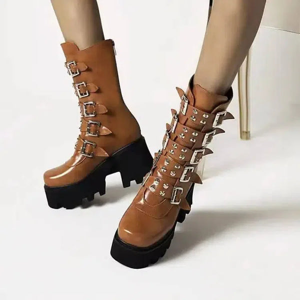 Botas de motociclismo de sola grossa Martin de cano médio para mulher
