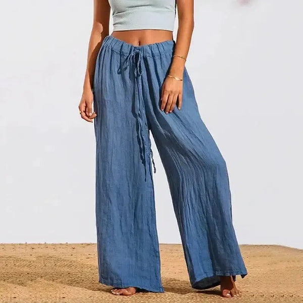 Calças casuais de algodão com cordão, macias e soltas, para mulher