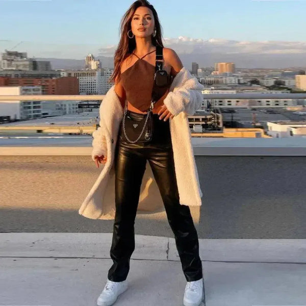 Descrição do Produto: Calça de Couro Elástica para Mulher