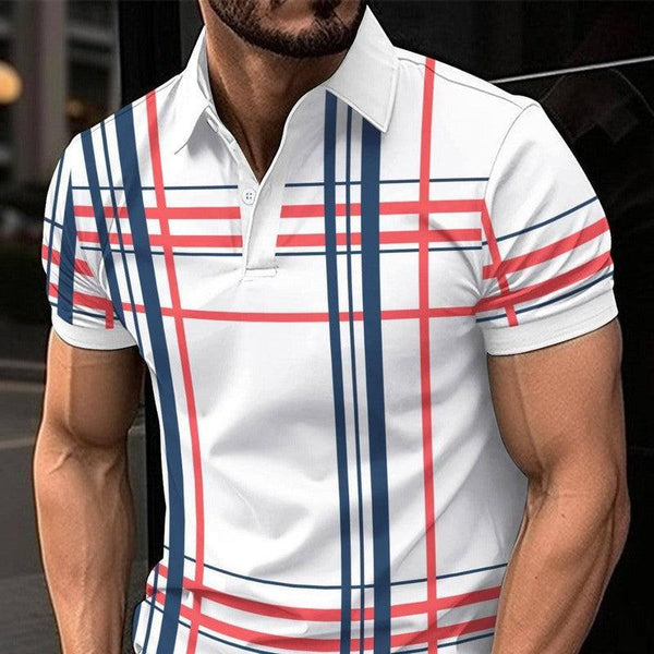 Camisa esportiva masculina estampada com botão de lapela e manga curta azul marinho / 3XL