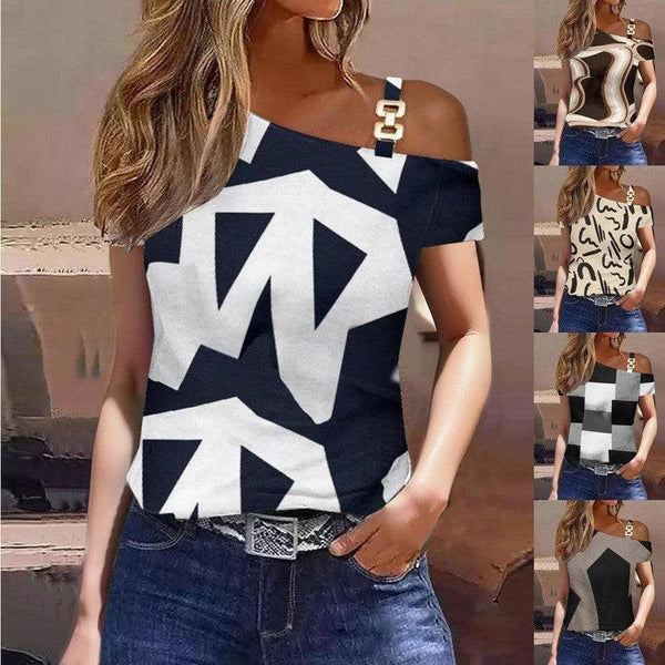 Fivela de metal de manga curta de simplicidade de verão feminino impressa