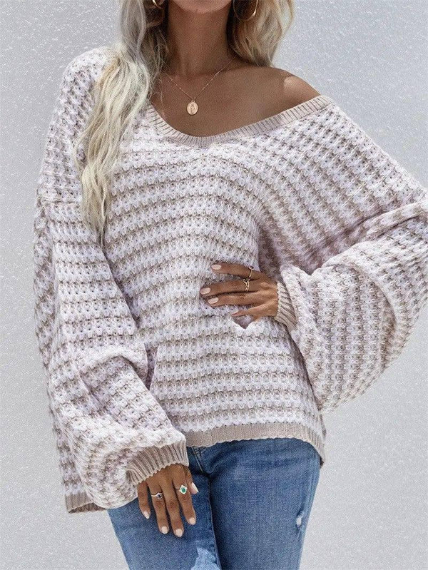 Camisola com riscas Camisola com decote em V