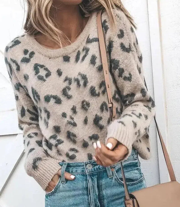 Camisola Camisola Camisola de malha Camisola com estampado leopardo Mulheres