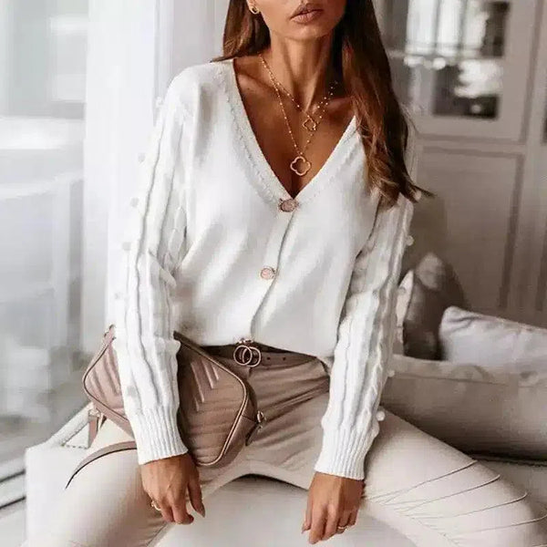 Camisola de malha com decote em V e pormenores de botões para mulher