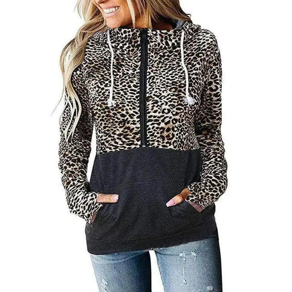 - Design de estampa de leopardo atraente: Este elegante moletom com capuz apresenta uma ousada estampa de leopardo que adiciona um toque de sofisticação selvagem ao seu guarda-roupa casual.