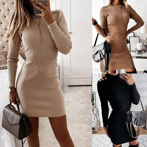 Saia curta de malha com ancas Camisola de malha de manga comprida para mulher