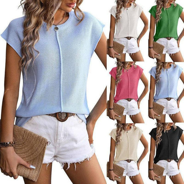 Novo top de malha com gola redonda e mangas curtas verão casual solto