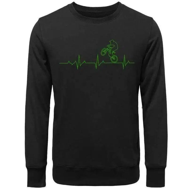 - Detalhe do design: Apresenta um gráfico verde único de um ciclista com uma linha de batimento cardíaco