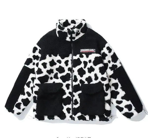 Camuflagem Panda Vaca Manchada Casaco de lã de cordeiro para homem e mulher