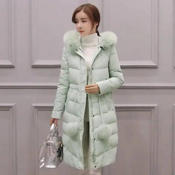 Casaco coreano de algodão acolchoado para mulher acima do joelho