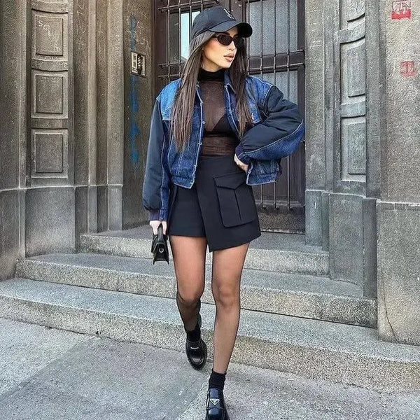 Casaco de ganga de piloto casual para mulher