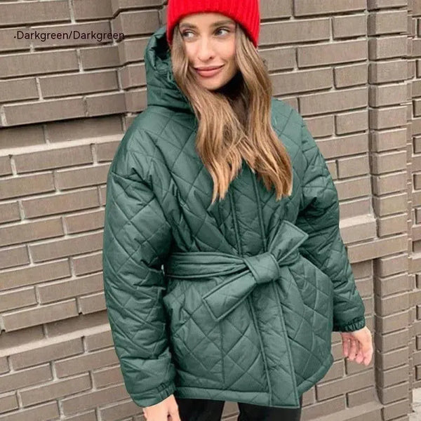Casaco de algodão com capuz Manga comprida com lapela rendada de ajuste fino