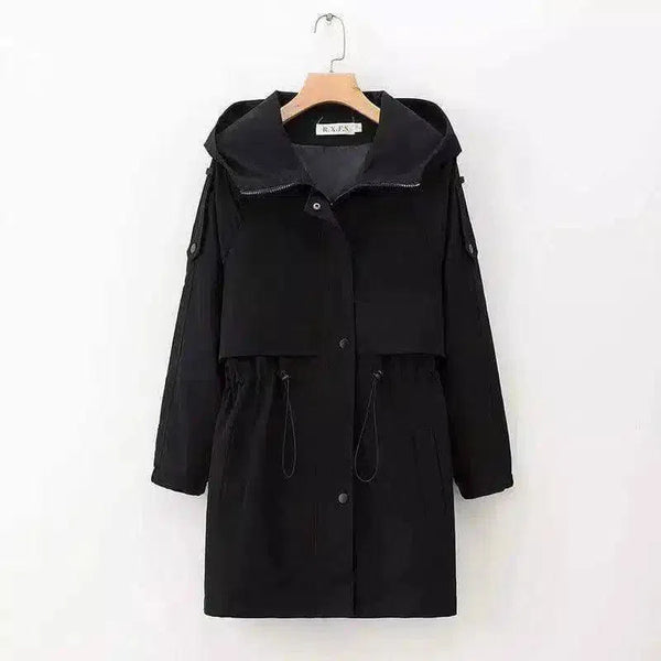 Casaco casual com capuz e cintura com cordão para mulher