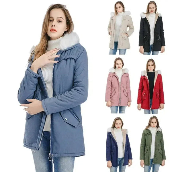 Casaco de comprimento médio com gola de pelo grande