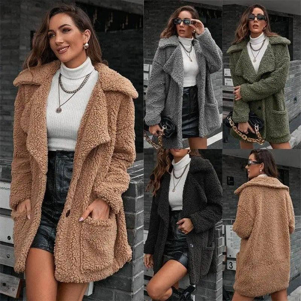Casaco de lã de bolha com um só peito Casaco de lã de cordeiro com lapela solta