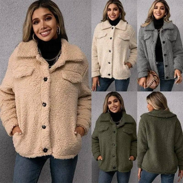Casaco de pelúcia de lapela casual solto Casaco de lã de cordeiro