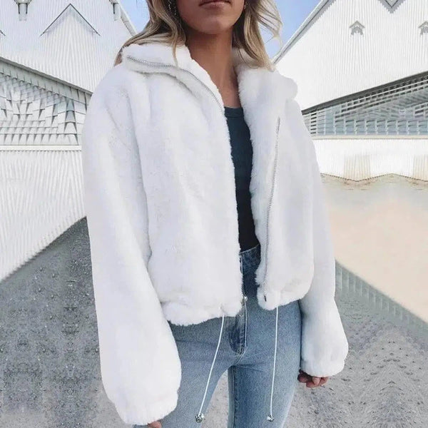 Casaco de pele de coelho de imitação de cor sólida para senhora