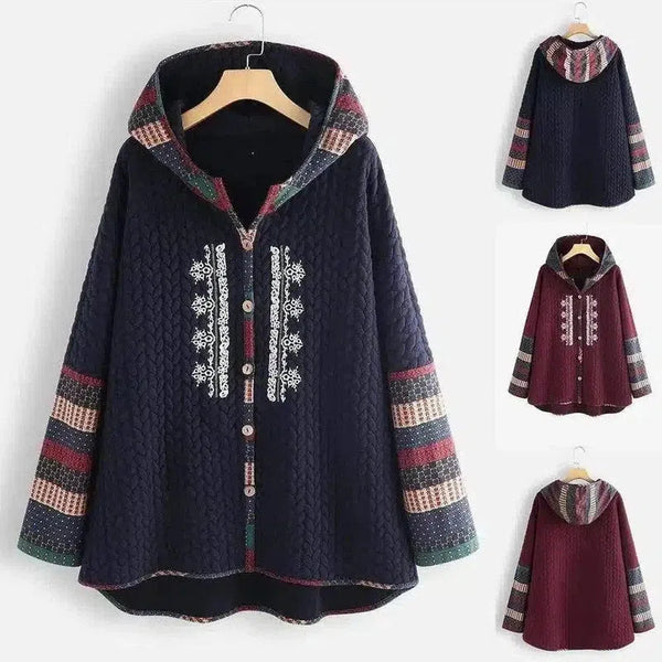 - Estilo do decote ou dos ombros: Encapuzado com forro interior estampado