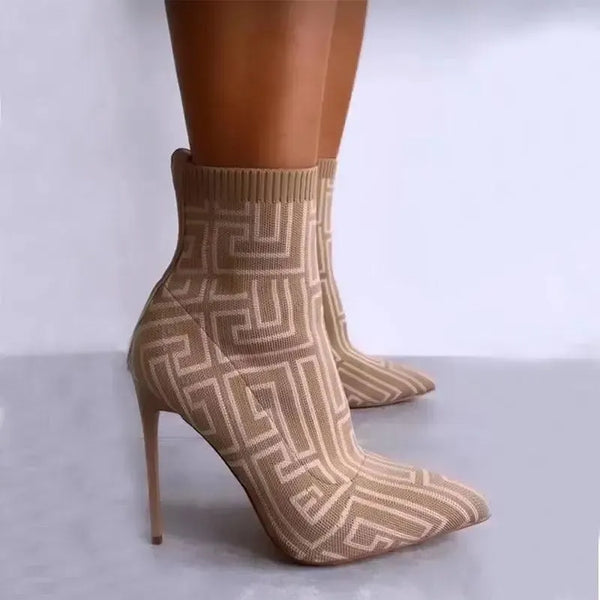 Moda Botas de tornozelo Mulheres Botas de salto alto apontadas para o dedo do pé