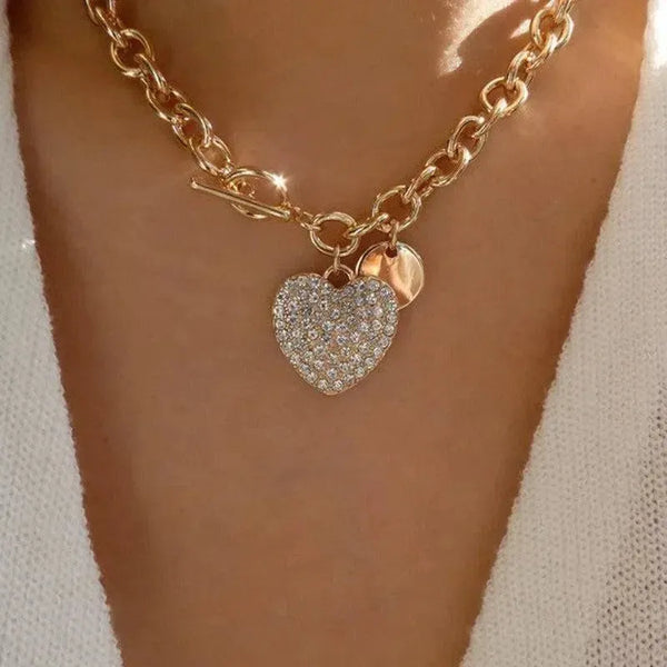 Descrição do Produto: Colar feminino em forma de coração redondo com diamantes