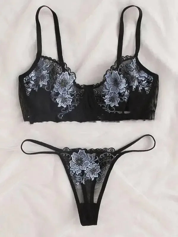 Lingerie de renda bordada Temptation Lingerie Set