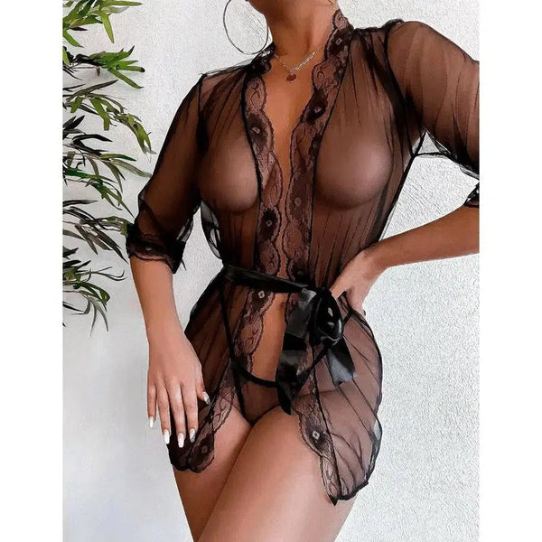 - Nome do Produto: Conjunto de Vestido de Pijama Preto Lingerie Puro Desejo