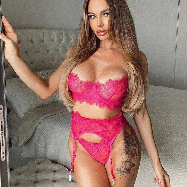 Descrição do Produto: Lingerie feminina bordada em renda pérola sling três