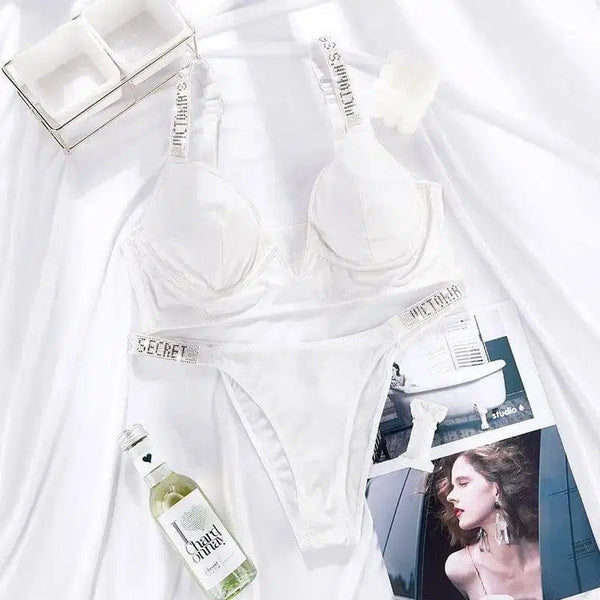 Descrição do Produto: Sutiã Push Up Deep V Letter Rhinestones Set Women