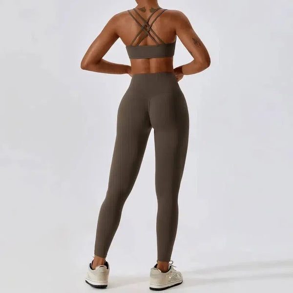 Conjuntos de roupas de ioga femininos com desgaste atlético caneleiras de cintura alta