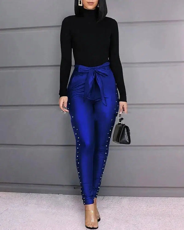 - Tipo de Peça: Top de Manga Comprida & Conjunto de Calças de Cintura Alta