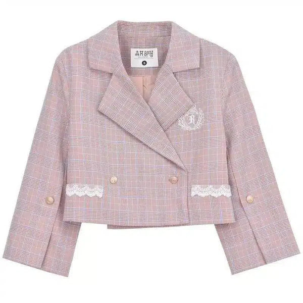 - Detalhes do Design: Fecho trespassado, pormenor de renda nos bolsos, padrão axadrezado