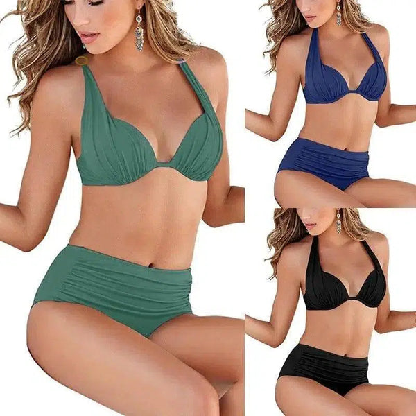 Biquíni com aros e folhos Fato de banho de cintura subida