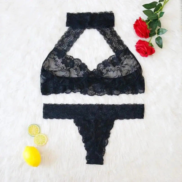 Descrição do Produto: Fat MM Suit em Renda Deep V Hollow Halter Neck