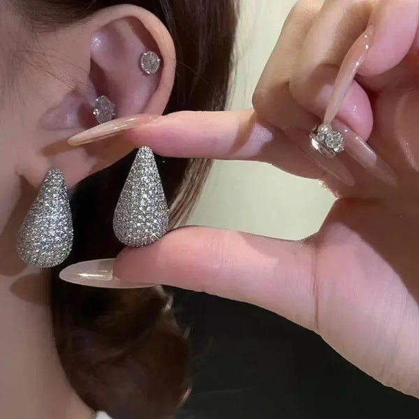 Jóias da Moda Vintage Chunky Dome Drop Earrings For Women Glossy Stainless Steel Thick Zircon Inlaid Teardrop Earrings Women