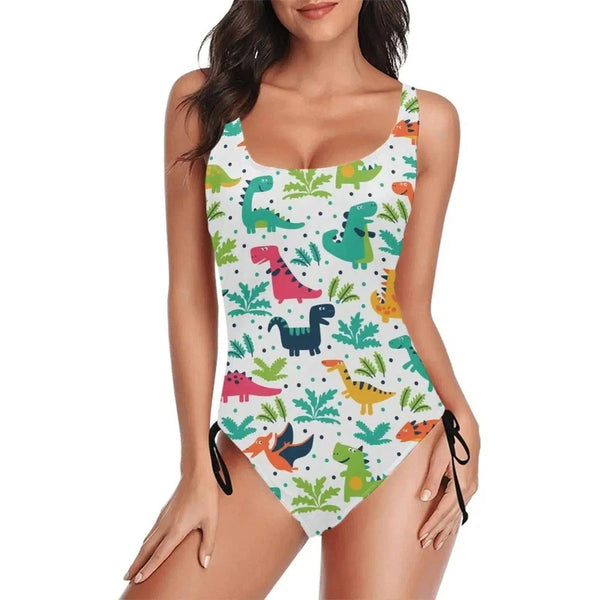 99diy Fato de banho de uma só peça com estampado personalizado com cordão