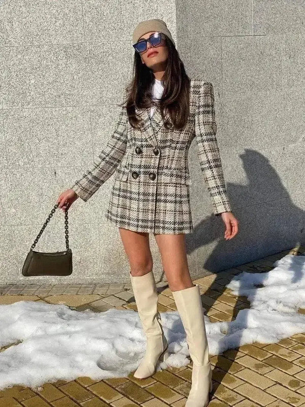 - Tipo de peça: Mini vestido estilo blazer xadrez