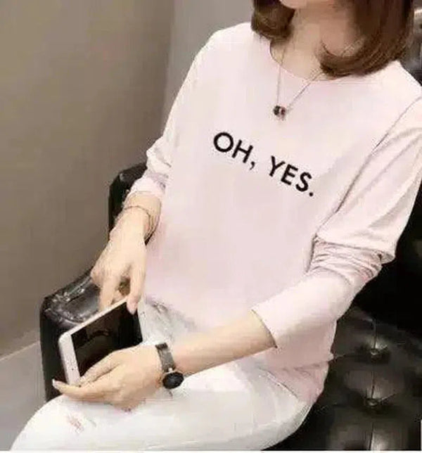 - Detalhe do design: Gráfico de texto frontal "OH, YES."