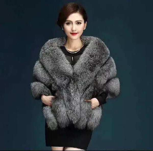 outono e inverno novo casaco de pele de raposa imitação de pele de raposa prateada