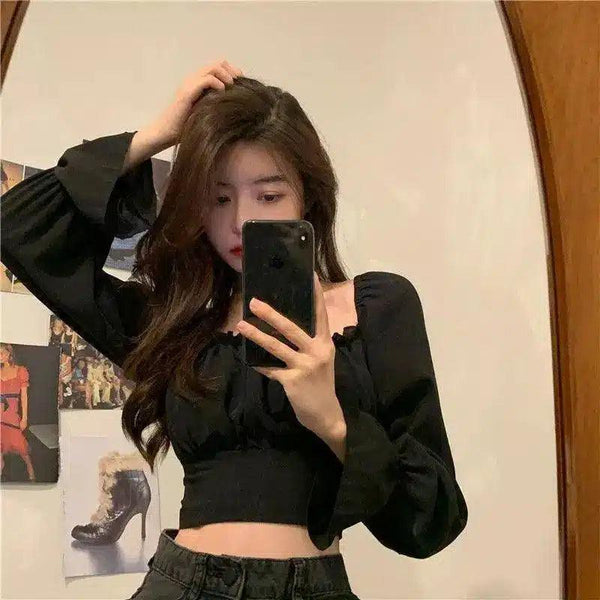 Fada do outono Decote quadrado com folhos Manga folhada na cintura