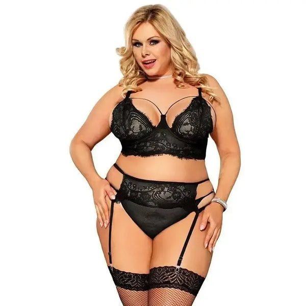 Fato de lingerie com cinto de ligas com peito, tamanho grande