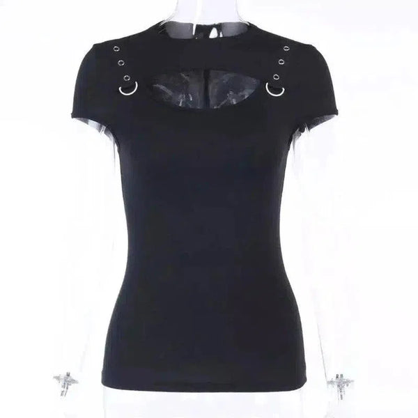 T-shirt de mulher de estilo gótico com pormenores em metal