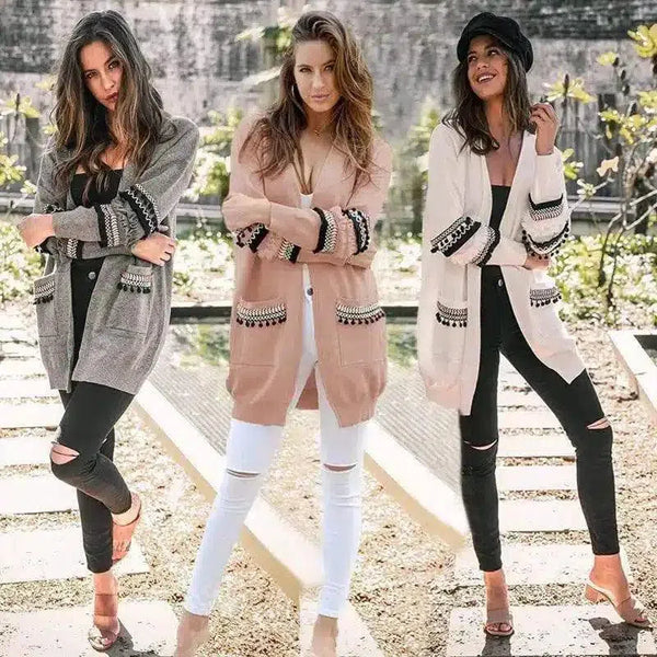 Casaco de malha casual com bolsos para mulher