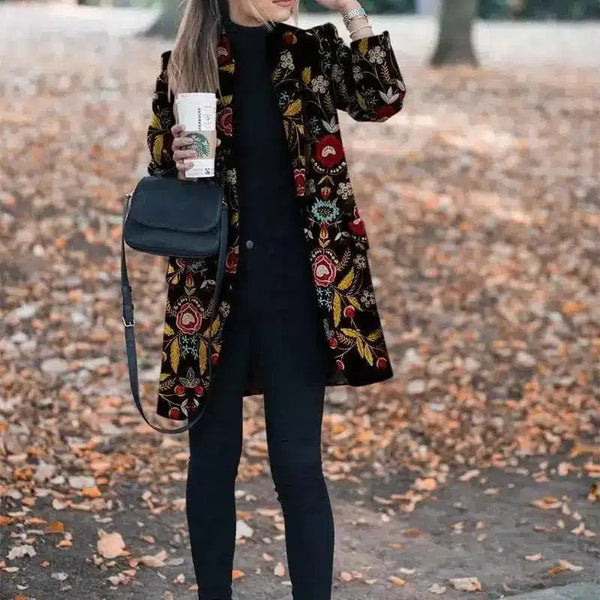 Casaco comprido com estampado floral para mulher