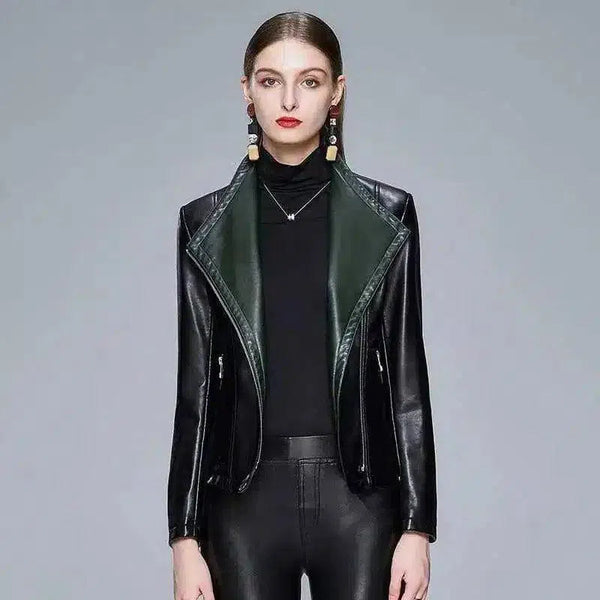 Casaco de cabedal com bolsos com fecho de correr para mulher