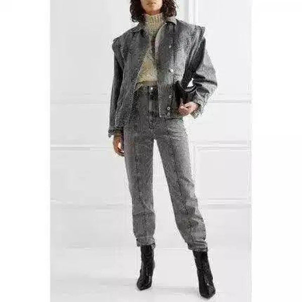 Conjunto de casaco de ganga e calças de ganga para mulher