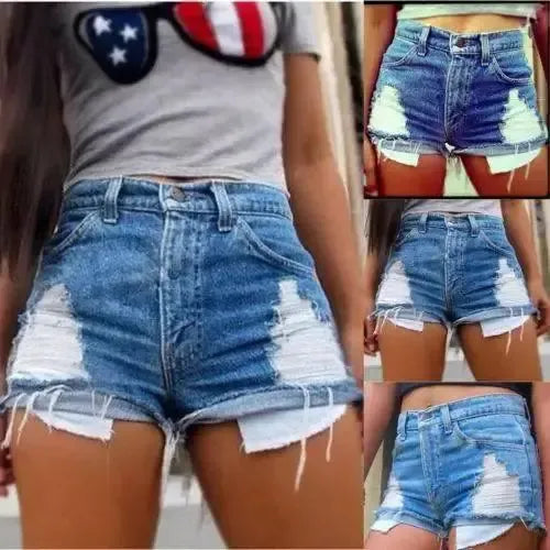 Europa e América buraco bolso denim calças quentes calções